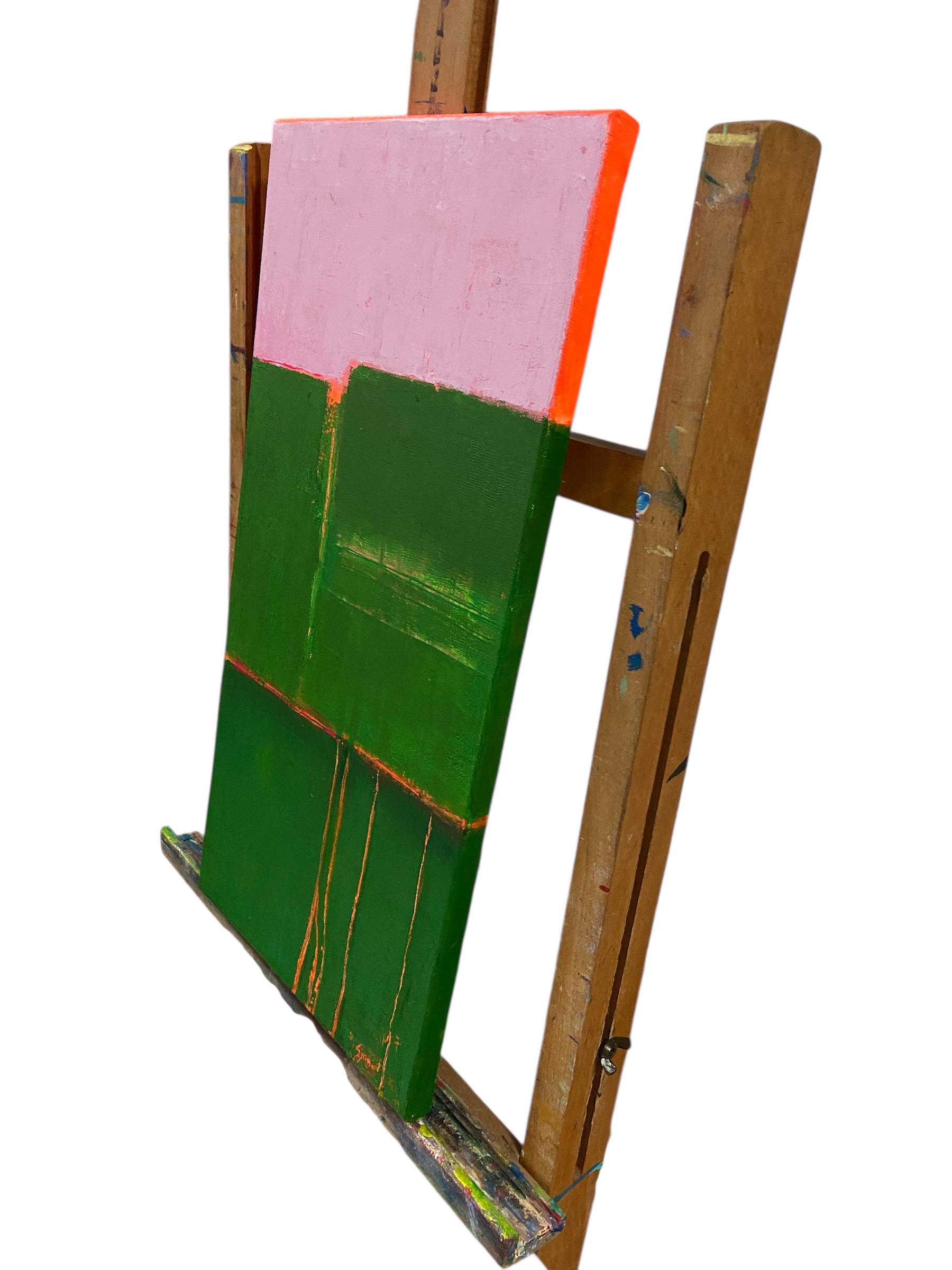 De zijkant is zowel met groen als oranje geschilderd