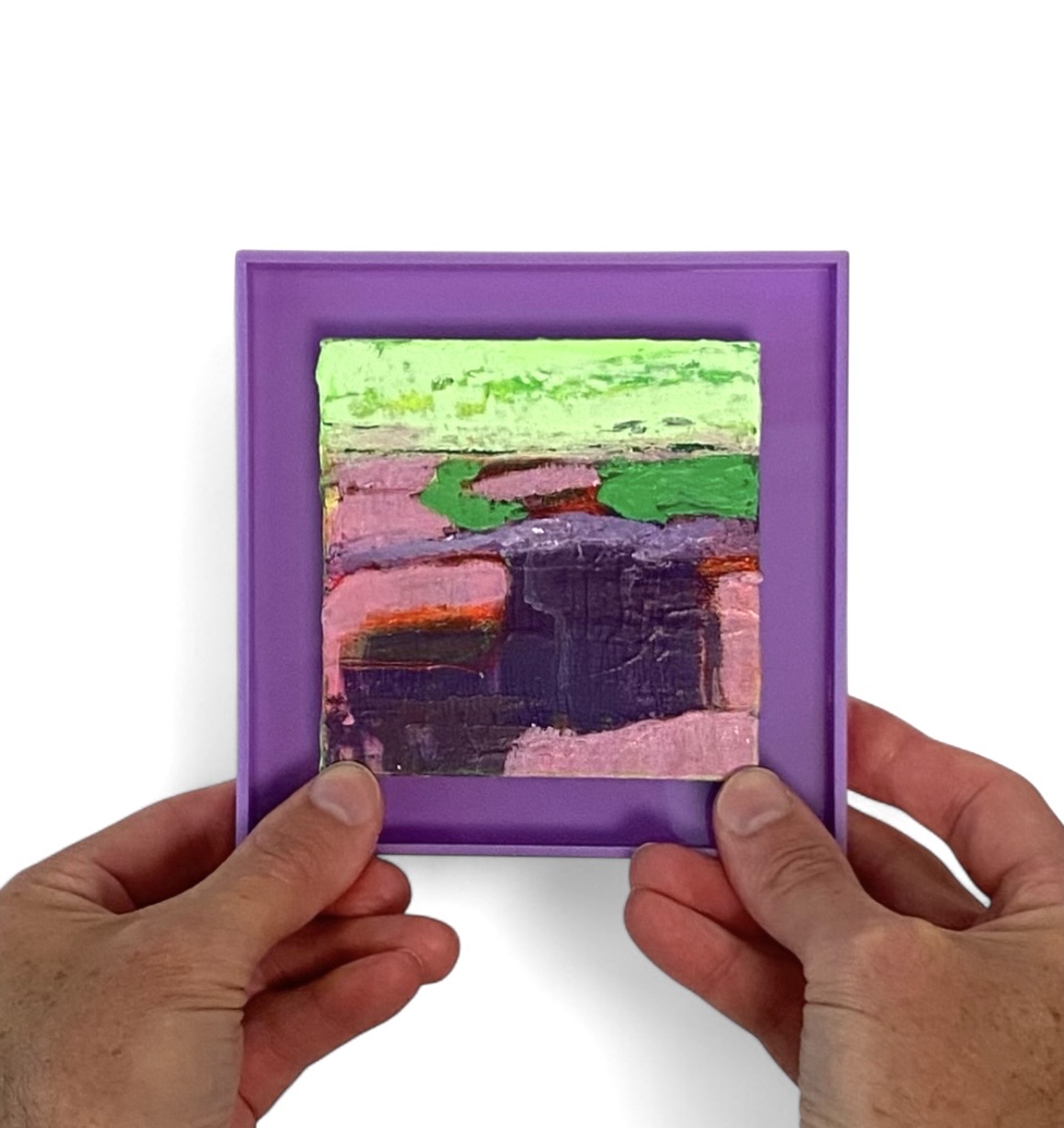 Het schilderijtje kan geleverd worden met een bijpassend lijstje. [gedn fluor] Meerkosten €25.-